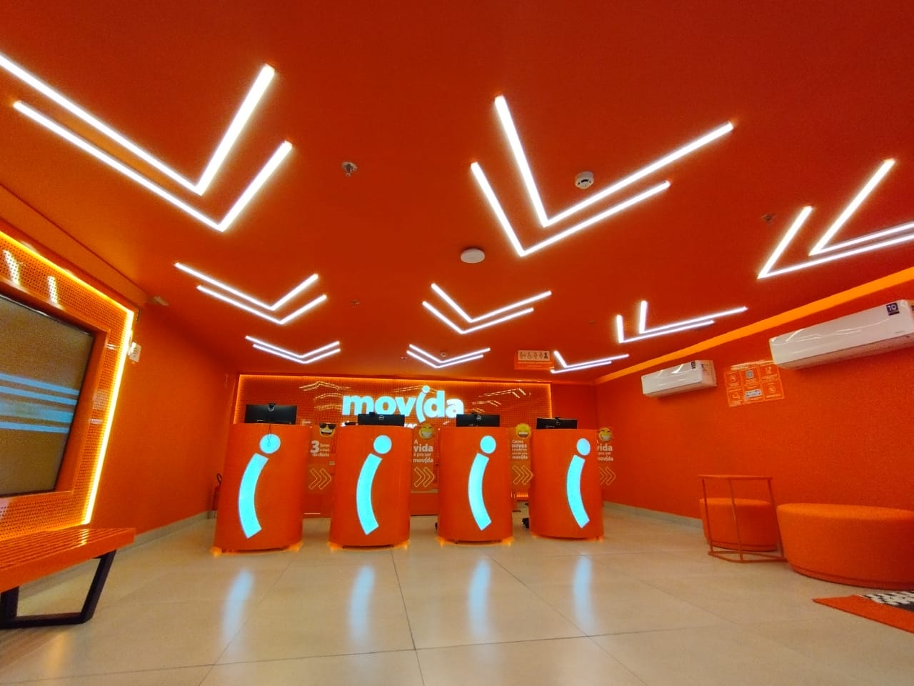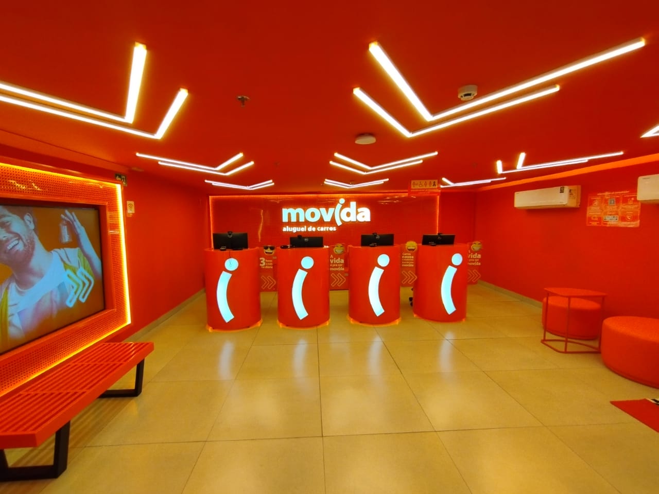 Além disso, criamos uma área dedicada ao atendimento convencional, onde foi implementada a identidade visual padrão da Movida.